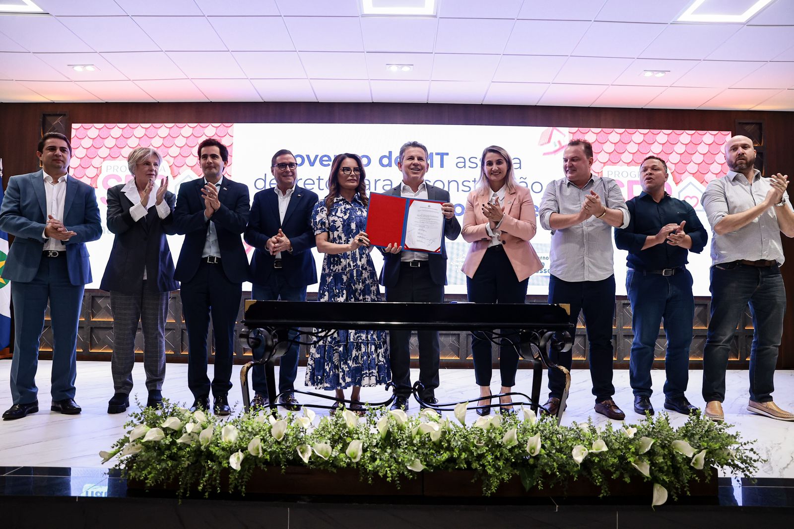 O governador Mauro Mendes assinou, nesta terça-feira (11.07), o decreto que irá viabilizar a construção de 40 mil casas populares em todo Mato Grosso pelo programa  SER Família Habitação, idealizado pela primeira-dama do Estado, Virginia Mendes . Por meio da MT Par, o Governo concederá subsídios de até R$ 20 mil para complementar o valor de entrada da casa própria, diminuindo a necessidade de aporte de contrapartida no ato da contratação do financiamento habitacional.