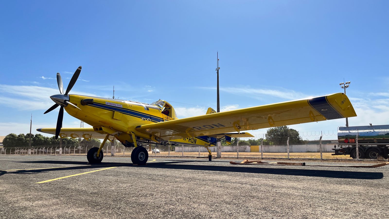 A Defesa Civil de Mato Grosso disponibilizou, nesta sexta-feira (04.08), uma aeronave Air Tractor 802 para reforçar as ações de combate a incêndios na Região Sul do Estado. O avião ficará no hangar da Prefeitura de Primavera do Leste, no Aeroporto Municipal, garantindo ainda mais eficiência na atuação do Corpo de Bombeiros.