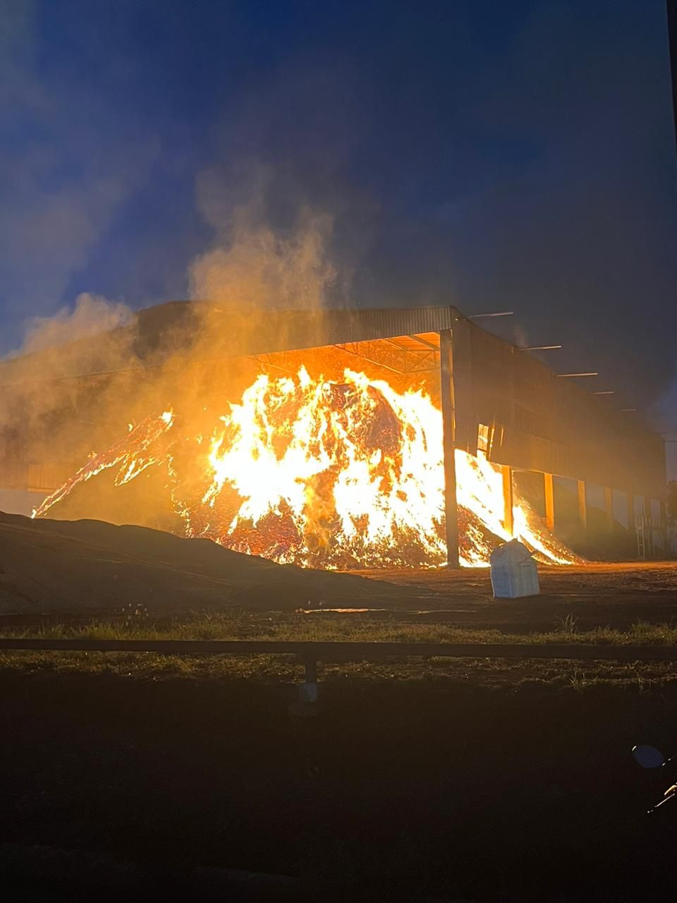 As chamas atingiram aproximadamente 15 mil metros cúbicos de cavaco, que são pequenos pedaços de madeira usados para a combustão nas caldeiras. Não houve feridos.