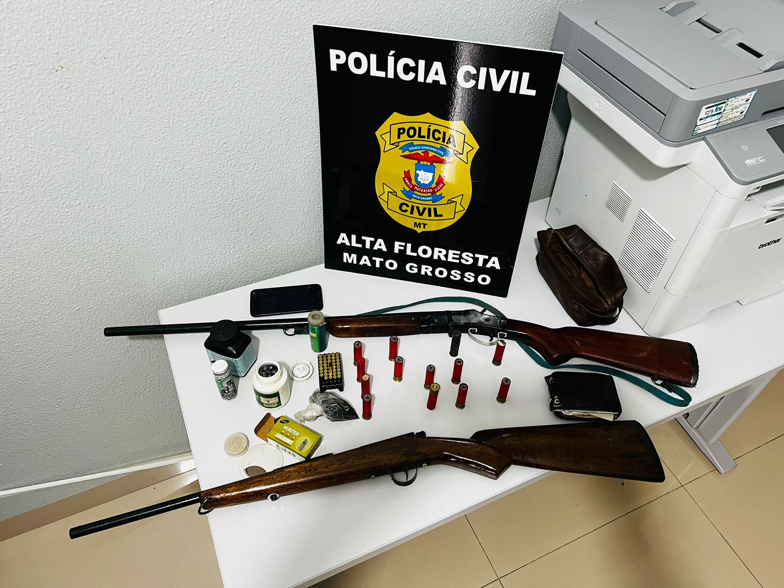 A ação para cumprimento de mandado de busca e apreensão resultou na localização de duas espingardas, munições, entre outros materiais utilizados para recarregar munições.