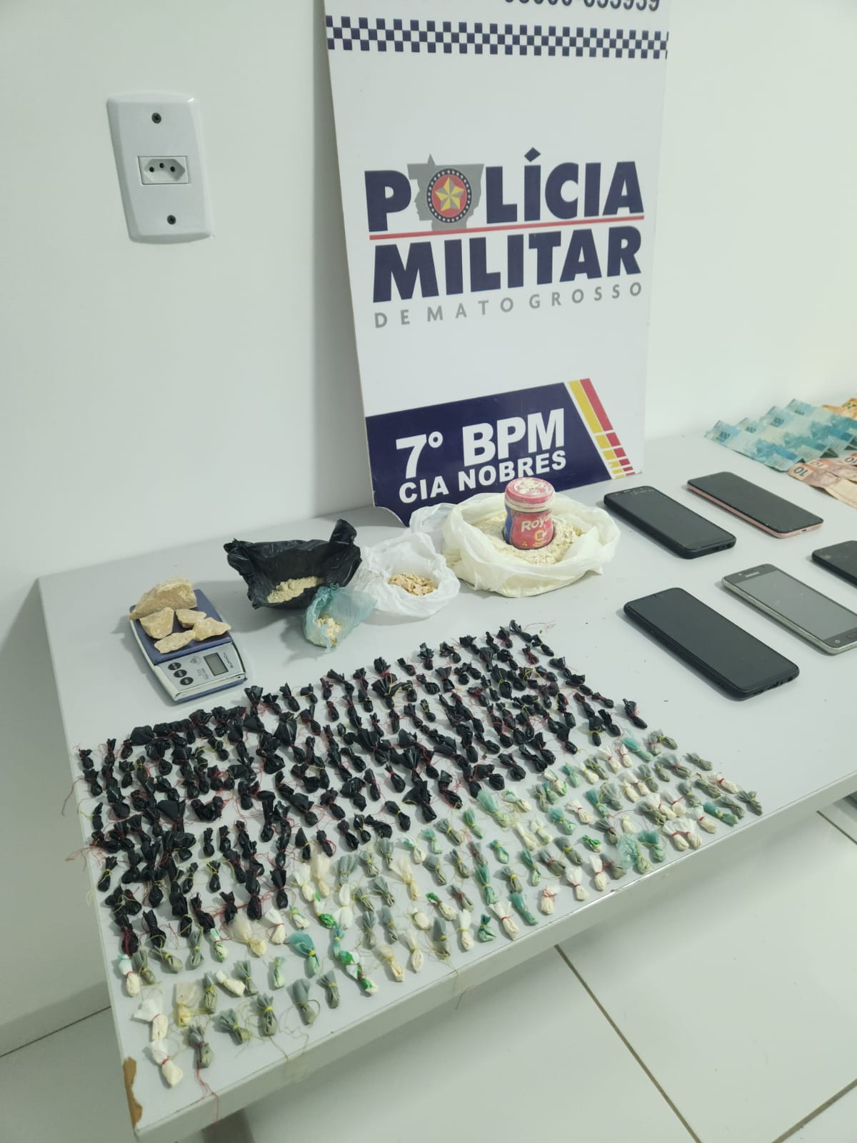 Policiais militares da 1ª Companhia Independente, do 7º Batalhão de Nobres, apreenderam, nesta quarta-feira (20.03), 285 porções de entorpecentes, no bairro Jardim Petrópolis, no município. Um casal e um adolescente foram detidos por formação de quadrilha e tráfico de drogas.