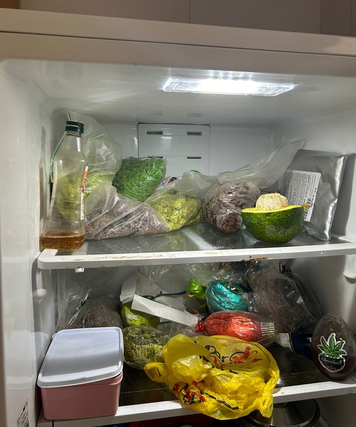 Cumprindo a ordem judicial, os investigadores encontraram chocolates com maconha, estufas para germinação de sementes da planta, além de uma grande quantidade de maconha curtida em álcool.