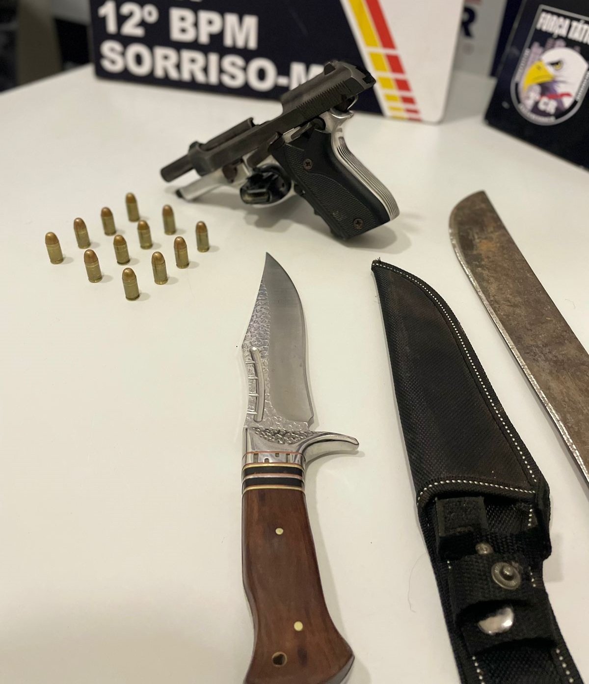 A ação resultou também na prisão do motorista de uma Toyota Hilux, que, além de estar embriagado, portava uma arma de fogo calibre .380 com 12 munições intactas, um facão e uma faca.