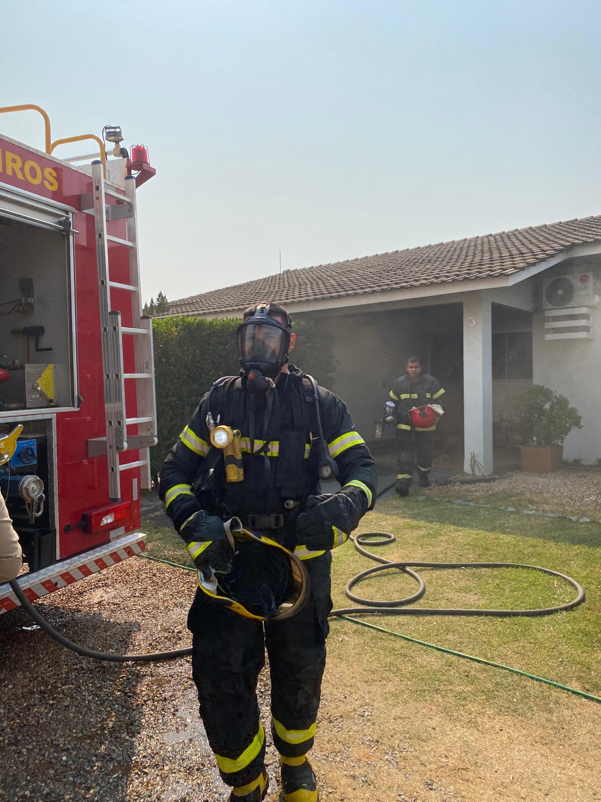 Para combater o incêndio, os bombeiros militares se organizaram em duas equipes. Uma delas ficou encarregada do combate às chamas, enquanto a outra se dedicou à busca e salvamento de dois gatos que estavam na residência.