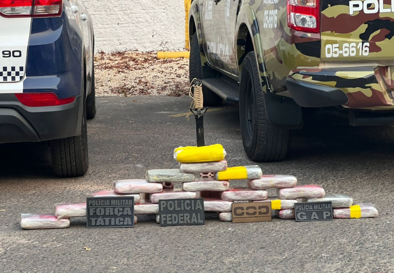 As equipes do 5° e 11° Comando Regional de Mato Grosso, além do Comando de Operações de Divisas (COD) de Goiás e da Polícia Federal, realizavam bloqueio em virtude da Operação Protetor no momento em que flagraram condutor de uma caminhonete Chevrolet S-10, de cor prata, que freou bruscamente na rodovia ao visualizar barreira.