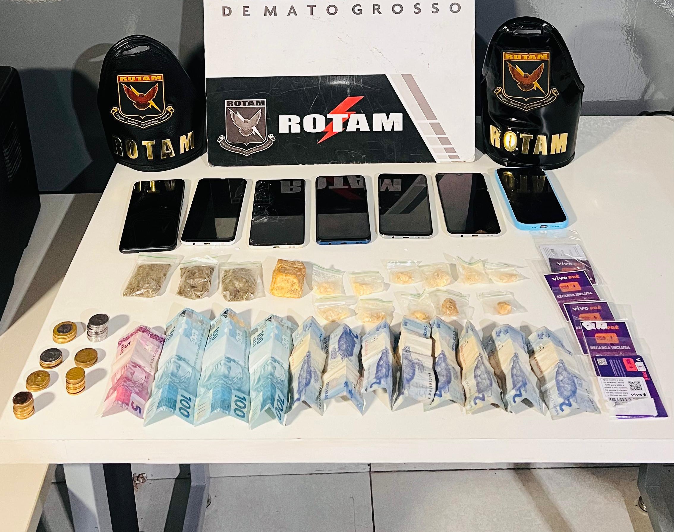As equipes saíram em busca do veículo e o condutor foi abordado no final da Avenida Verdão. Durante busca veicular, os militares apreenderam algumas porções de entorpecentes, um aparelho celular e parte do dinheiro em espécie.